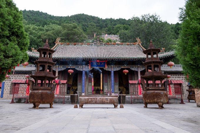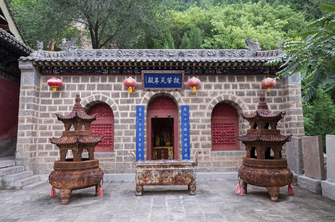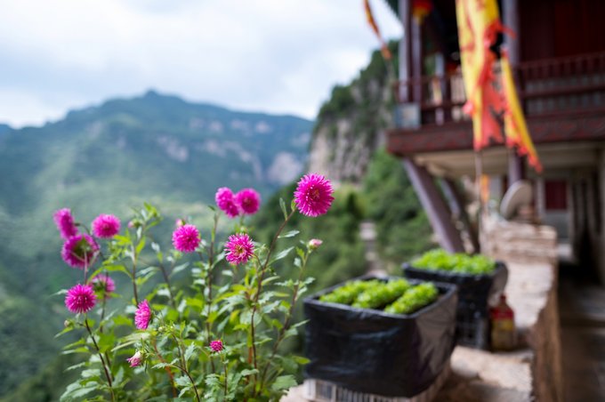 站在院落内远望可以看到玉皇顶之上的玉皇阁,巅立于群山之间,真不愧是风水宝地。 清晨一早起来的话,非常的安静,到处的鸟语花香,还会感觉到一丝凉意。
