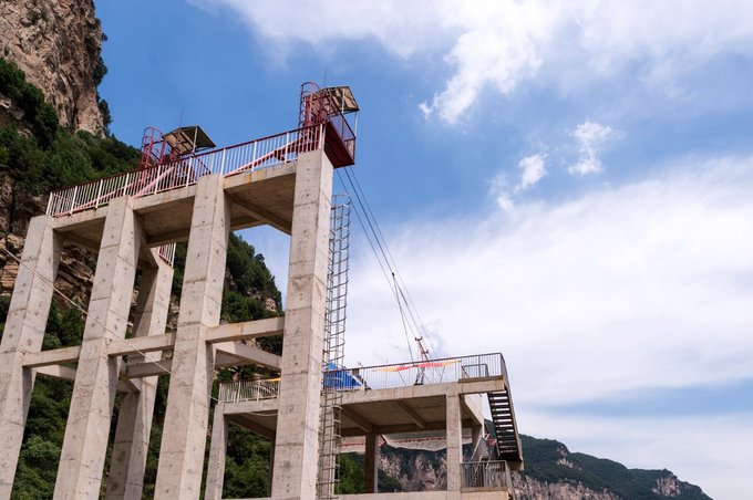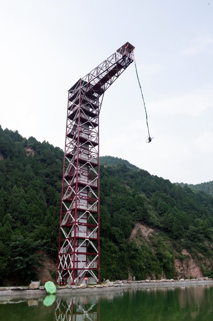 ★★★蹦极 云丘山蹦极总高度为46米,起跳点处为41米,蹦极台依山旁水,站在台上还可以看到远处的群山风光,当然更多的是眩晕、心跳加速的感觉。眼睛度数超过600度、近期有过骨折经历以及高血压心脏病恐高患者是无法挑战,价格为150元,结束后会颁发蹦极挑战者证书。
