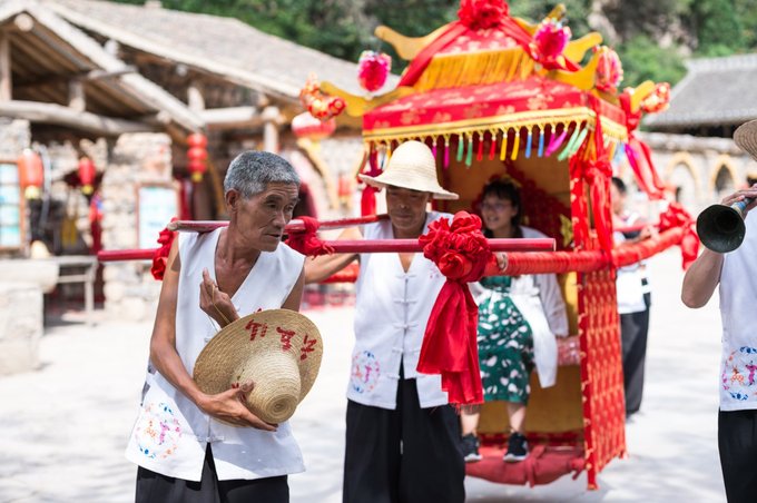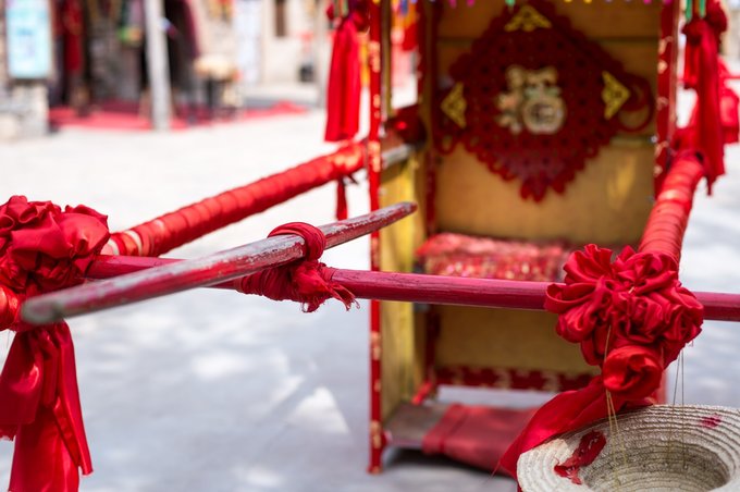 在山西,花轿不仅是一种交通工具还是娶亲的重要载体。 经常在电视剧中看到,大户人家的老爷或小姐出门时或者结婚时,就会有花轿的出现,这也是一种地位的象征,有钱人家才能享受到的。