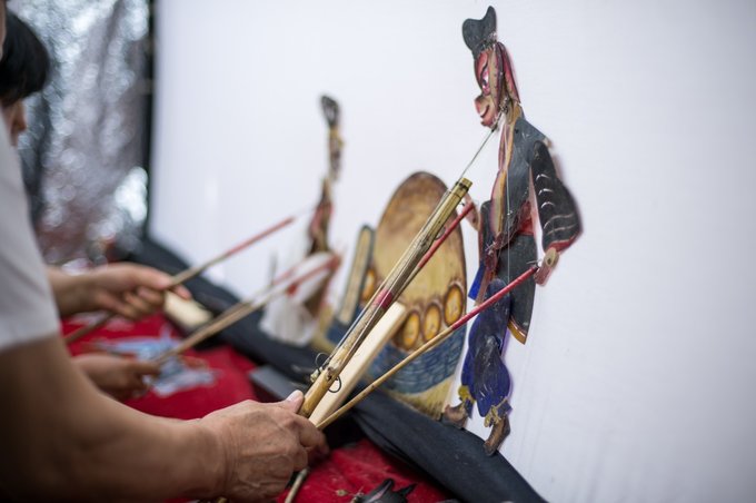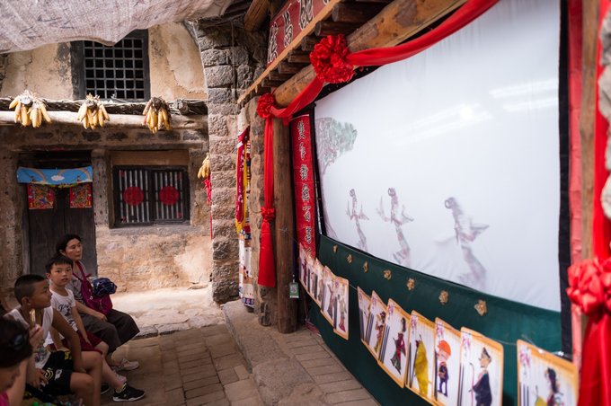 在这里还可以看到传统的戏剧表演形式:皮影戏,这是一项民间古老的传统艺术。 表演时,艺人们身藏幕布后面一遍操纵影人,一边配合音乐用当地流行的曲调讲述故事。去时,已经开始了表演猪八戒背媳妇,大家正在兴致勃勃的观看着。