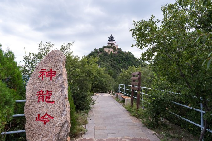 下缆车后大约步行30分钟可到达一处山顶平台,这里有一块石碑:神龙岭,在这里可以清晰的看到不远处的祖师殿。这里也是休息的地方,适当的食物和水补给,因为一会儿还有一段更陡的梯阶。