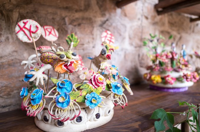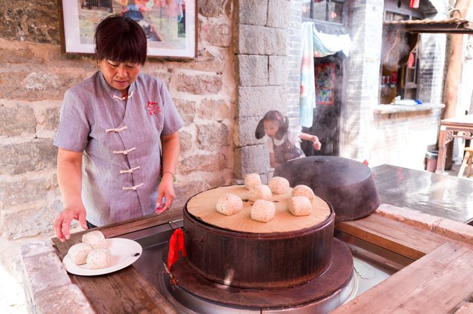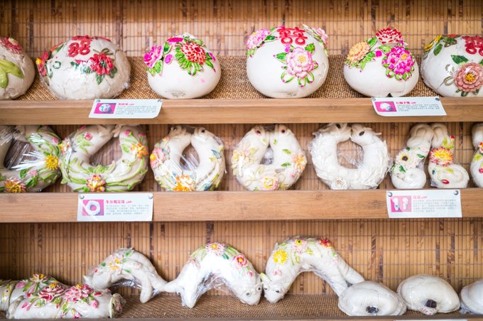 当然这馒头并不能体现山西的特色,在院落内还有一处云丘花馍才是当地特色,这里的妇女基本都会蒸花馍。 云丘花馍可以说是山西人民的民俗艺术品。而且馍馍种类繁多,功能不一,其中又人生礼仪馍、节庆习俗馍和日常食用馍,其中,节庆习俗馍主要是用来祭祀祖先、敬奉神灵。