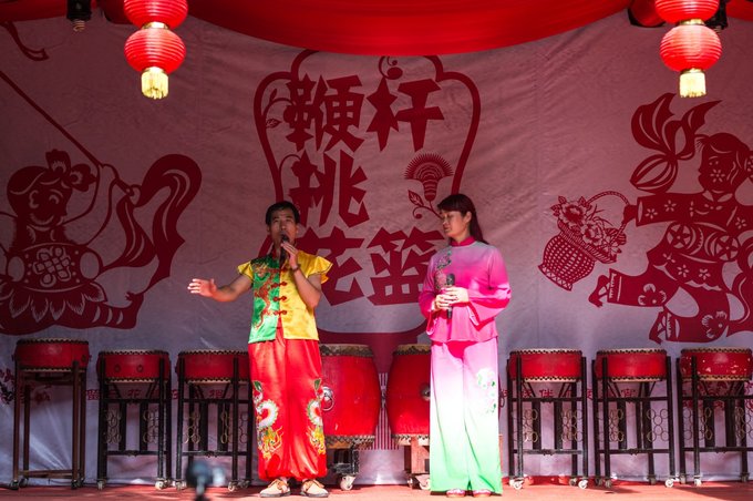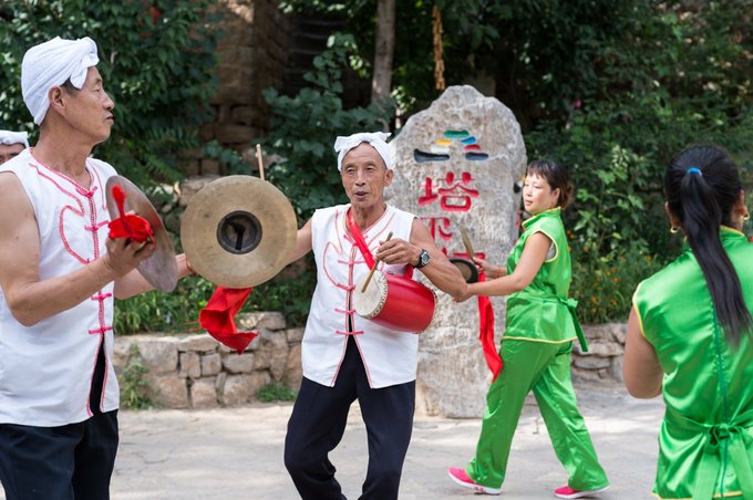 除了武术表演,这里还有腰鼓表演,之前在扭秧歌队伍中经常会看到身跨腰鼓的艺人。 腰鼓属于中国传统民族乐器,具有悠久的历史,在民间广泛被流传,独具魅力的安塞腰鼓掀起了黄土地上的狂飙,展示出西北黄土高原农民朴素而豪放的性格,张扬出独特的艺术性。