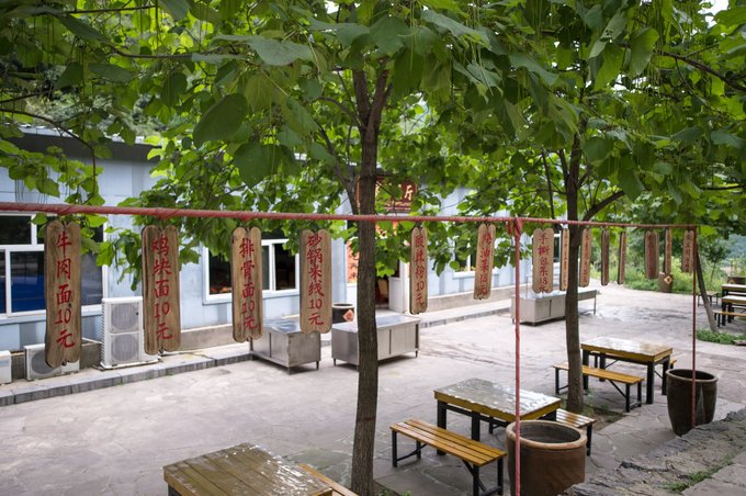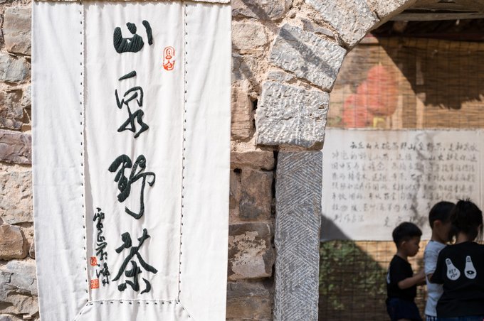 塔尔坡由于地处山之中,林木葱郁,生态环境极佳,所以在这里也种植有当地的茶树。在这里便有一家窑洞茶舍,叫山泉野茶,也叫大碗茶。