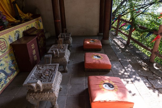 在房间内看到了一座鼎炉,不知道是道教留下的炼丹工具还是人们日常用的烹茶工具。