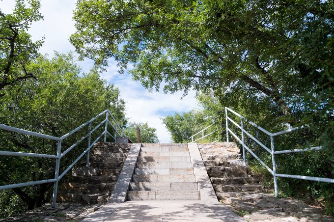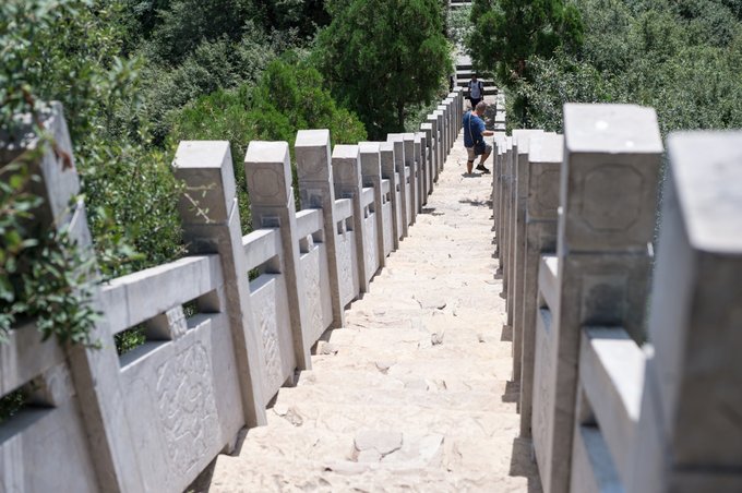 登至第二层需经过一段陡险的阶梯,特别陡,而且阶梯之间跨度高,上下阶梯一定要抓着一侧的链条,可见上天并不是一件容易事情。