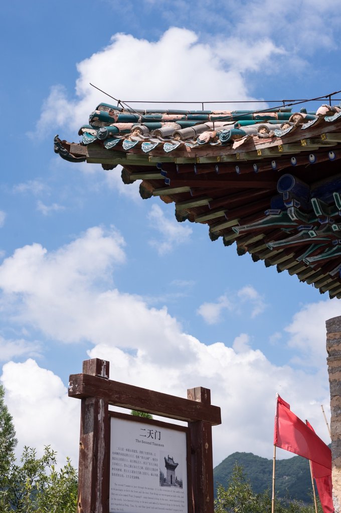继续下山便是二天门,这是一座歇山顶建筑,殿内供奉着持国天王、增长天王、光目天王及多闻天王四大天王,民间称之为“风调雨顺”,人们为祈福风调雨顺,收成大好,会前来此祭拜。每到一处天门,可以稍作休息,望望远处的风景,不尽相同。