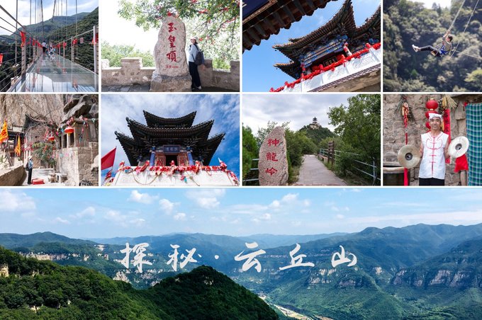 山西去过很多次,但云丘山还是第一次来。 说起云丘山,也许有些人会比较陌生。云丘山位于山西省临汾市乡宁县,地处吕梁山与汾渭地堑交汇处,是晋陕峡谷的一部分,也是国家4A级旅游景区,景区内峰峦叠嶂,自然资源丰富,景色秀丽。 云丘山有两座主峰,第一高峰为玉皇顶,山顶有玉皇阁,内供奉有万神的统治者玉皇大帝;第二高峰为祖师顶,祖师爷真武大帝曾在此修行并成仙;这里还是道教全真教龙门派的发源地,玉莲洞便是其最好的见证,丘处机曾在此修行;以及山间小道常见的土地庙,道儒佛三教一体的八宝宫,千年古村落塔尔坡,等等。 所以可以这么说,云丘山不仅风光优美,也是一处充满神秘气息的风水宝地,行走其间,或站在山巅,俯瞰这片土地,处处充斥着江湖气息。 而且在这里还可以体验到一些刺激的挑战项目,比如蹦极、悬空玻璃桥、悬崖秋千、索道滑翔翼、空中飞人等,一次次挑战,见证自我,挑战自我。