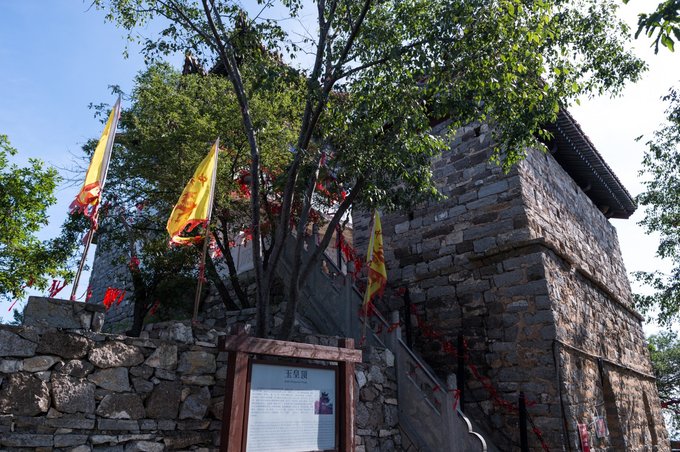 在往前走,便到了玉皇顶,清一色的山石结构建筑。三面为悬崖峭壁,也称得上一块险地,古时作为军事要塞最好不过了,易守难攻。
