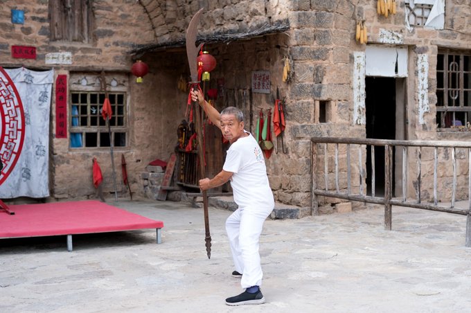 我们到时大爷正在耍大刀,虽然年纪大了,但耍起大刀非常流畅,一会儿工夫一套漂亮的刀法映在眼前。