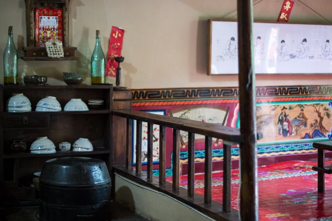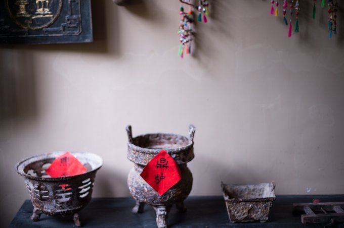 那时的房间除了桌椅床铺及盛放器皿的柜子外,还会在正中间位置设置“神仙牌位”,以保佑家人平安,财源广进。