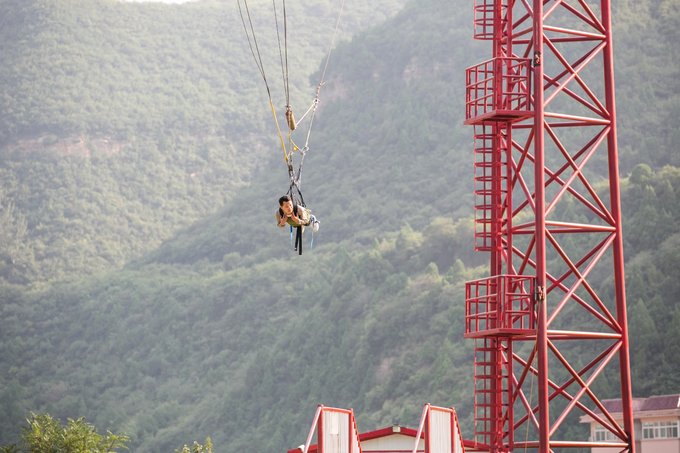 安全绳系在腰间,在摆动时完全感觉不到安全绳的存在,这点也是最让人害怕的,总感觉自己抓不牢而掉进悬崖峭壁之中。体验一次20元,非常划算,值得挑战。