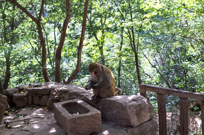 村落入口处,还看到一只猴子,不知道这山里是否有野猴出没。
