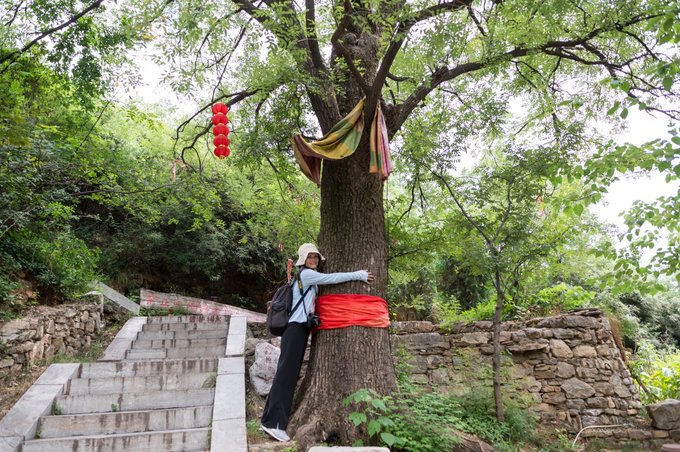 在院落内还有一株野生翅果油树,翅果油树也是山西独有特产,属于国家二级保护植物,很多人在树上系上了许愿绳。