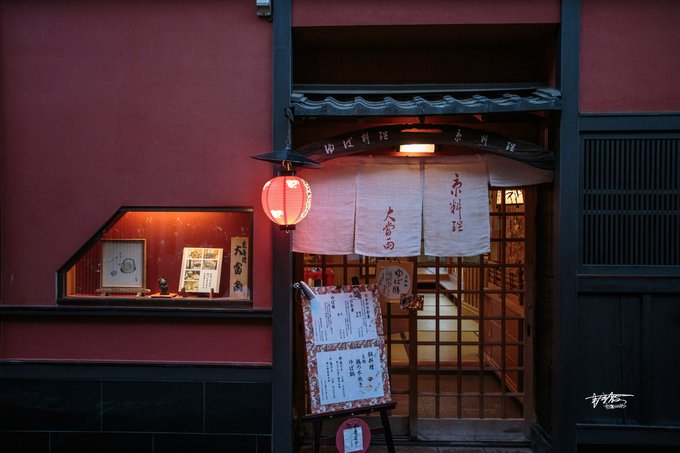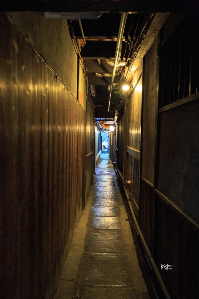 和其他日式老街一样,木屋、灯笼、牌匾和石板路都是先斗町的标志;而不同于其他街道的是,这里以“美食”出名,这也是当地人心目中的深夜食堂。 此时已是深秋,不能享受到这里特有的川床料理。据说,每年夏季有不少餐厅会在鸭川边摆上纳凉床,独具魅力的“川床料理”由此诞生。 每至华灯初上,狭窄的青石路,具有古代特色的建筑,灯笼中透出的微光,还有缓缓而行的歌舞伎,仿佛穿越了时光之感油然而生。 通向其他路口的小巷子也