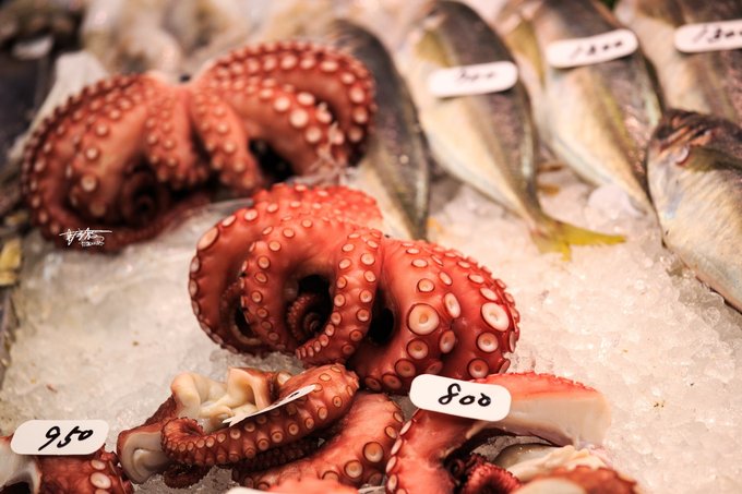 烧烤生鲜,食在京都首选锦市场 锦市场是一条非常有地域特色的小街道,当你的视线范围内,如果出现一个标志性的招牌——一只大公鸡和一个大写的“锦”字,那就证明,你走对路了。