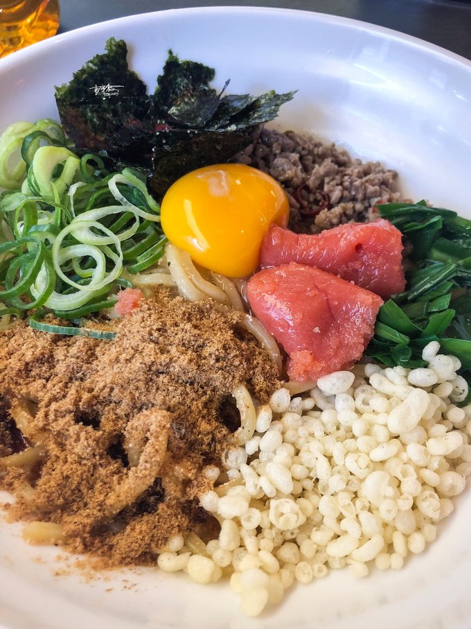 一家门口有类似烤肠的一种面,还有个胖乎乎的吉祥物,叫做明太郎,吃了一堆小零食后,我在这里吃了一份明太郎面,貌似一种鱼子,搅拌后的面条非常好吃。只是百度后也没有找到这个明太郎到底是什么。