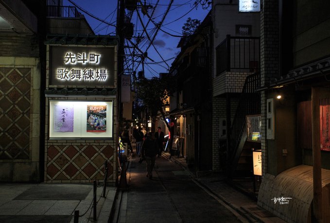 京都的“南锣鼓巷“,残留古都风情的街道 先斗町通り是一条充满京都风情的细长的街道,而且极容易错过,临近四条大桥。 先斗町通り原本是鸭川的沙洲,江户时代初期,因护岸工事埋立,称作新河原町通。之后发展成茶屋、旅笼等林立的繁华街,公许艺妓营业后,成为有名的花街。