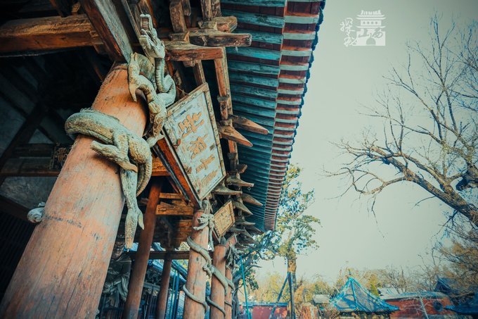 圣母殿的长廊上有八根大柱,且每根大柱上都有一条龙环绕着。这些盘龙怒目利爪,周身风从云生,一派生气,虽已近千年,鳞甲须髯。木雕盘龙是中国现存最早的盘龙雕柱,雕于宋元佑二年(1087年)。