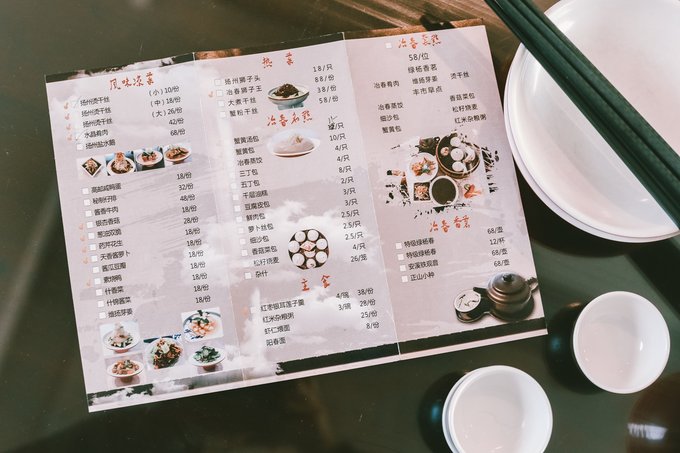早有耳闻扬州人“早上皮包水,晚上水包皮” 一开始还不明白什么意思, 后来才知这是用来概括扬州人生活很悠闲的一句话。 此前一直只知道广东人喜爱早茶, 没想到扬州人也有早上喝茶吃早点的习惯。 一向是不喜欢早起吃早餐的, 每天早中饭一起吃个Brunch。 可是来扬州怎么能不试试这里的早茶, 感受一些最璞真的市井气息呢。 说到早茶,最出名应该要数冶春富春了, 光看这个门头, 便知道是有多么老字号招牌啦, 既保留的传统的中国风又不失国际范。