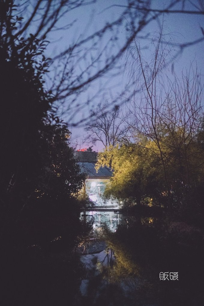 【扬州瘦西湖唐子城民宿】 从大明寺出来已经快要天黑, 瘦西湖我们只能明天再去啦。 拿手机上网搜了一下周边住宿, 一家叫“唐子城”的民宿在众多酒店的名字里倒是显得格调质朴, 简单翻了一下照片, 更是觉得民宿装修很有古韵和唐式风格。 于是便直接开车导航过去。 周边并不是很繁华, 所以大老远便能看到看到民宿院落早已亮起的暖光。