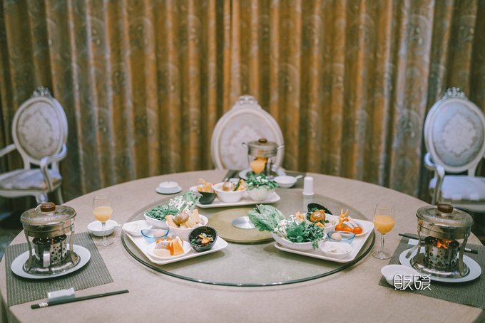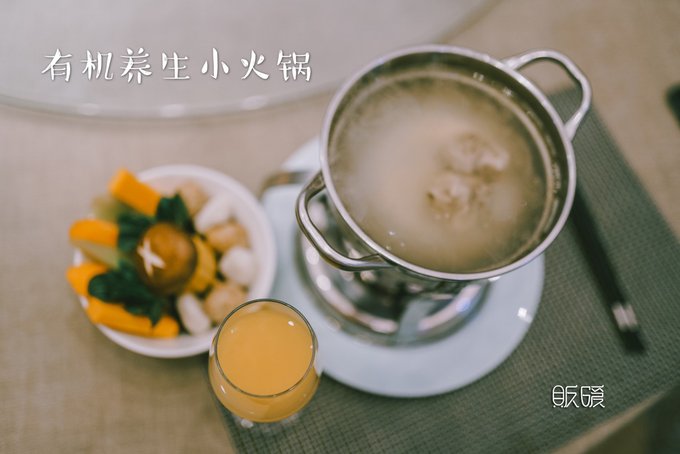 冬天的夜幕总是降临的遂不及防, 泡汤泡饿了的我们决定就地在这里解决掉晚餐。 温泉大厅出来二楼便是天乐湖的餐厅了, 养生小火锅是这里的主打。