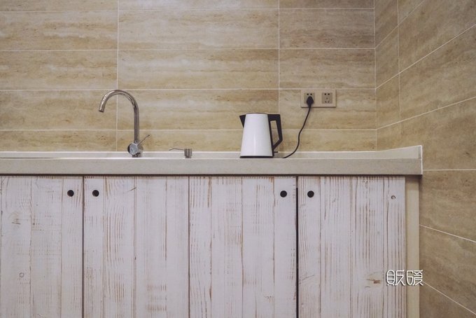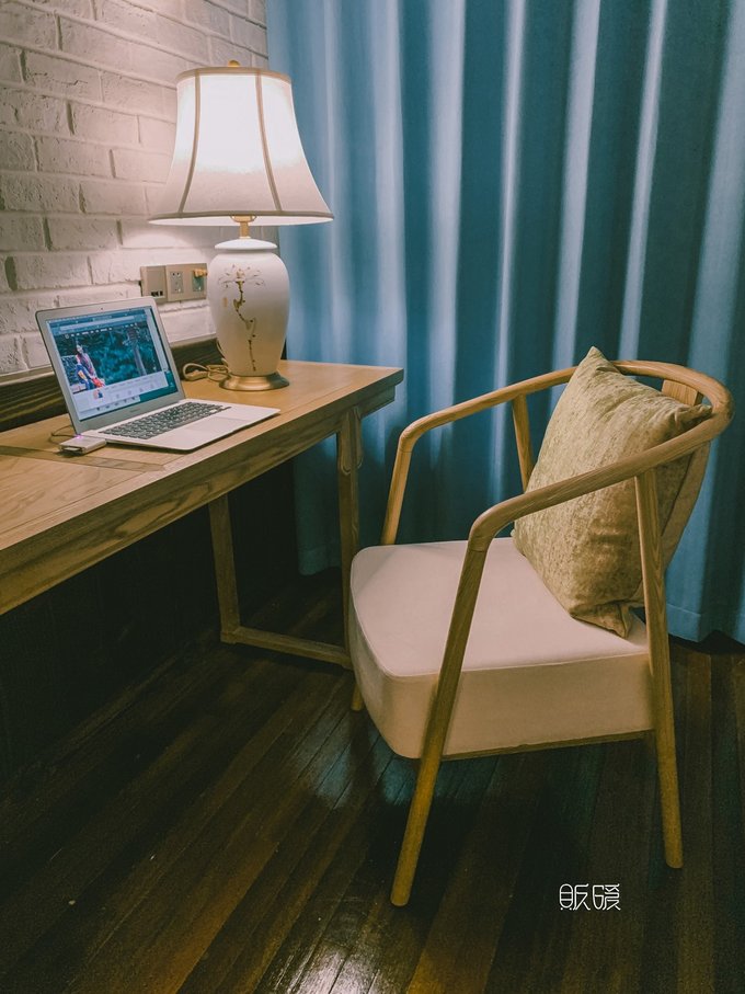 如果不曾入住而只是外面看看的话, 那可能真的会错过更多入住体验上的细节, 而这些细节才是我觉得一家民宿真正匠心之处的体现。 我们的房间在二楼,没有电梯, 需要穿过咯吱咯吱的木质楼梯, 走过同样咯吱咯吱作响的木地板才能抵达。 这种感觉很特别, 就像是住在一幢年代久远的老洋房里。 房间整体采用原木色与蓝绿色调的搭配, 甚至小到一个柜子和门板都有着这样色调的统一。