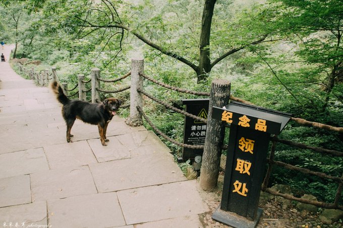 下楼后,来到关楼另一面,看到一个纪念品领取处,但是没有人在,仅一只小狗一脸呆萌地望着我, “难道你是纪念品吗” 话说剑门关景区内看到好多这样的小狗,他(她)们无疑例外都会跟着游客走好长一段路。我们路遇一对母子,说是要把一只跟着他们走了很久的小花狗带回家来着。