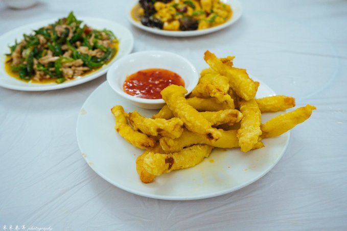 ↑ 这道菜叫做剑门一绝,您没看错,那炸至金黄色,仿佛鸡柳似的就是豆腐啦。这也是饭馆老板的推荐菜,不得不说确实够得上一绝,火候正好,豆腐入口香糯爽滑,软硬适宜。而旁边那碗配酱的滋味也很独特,酸甜中带一点蒜香,蘸上一些在连炸豆腐一起入口,回味无穷。