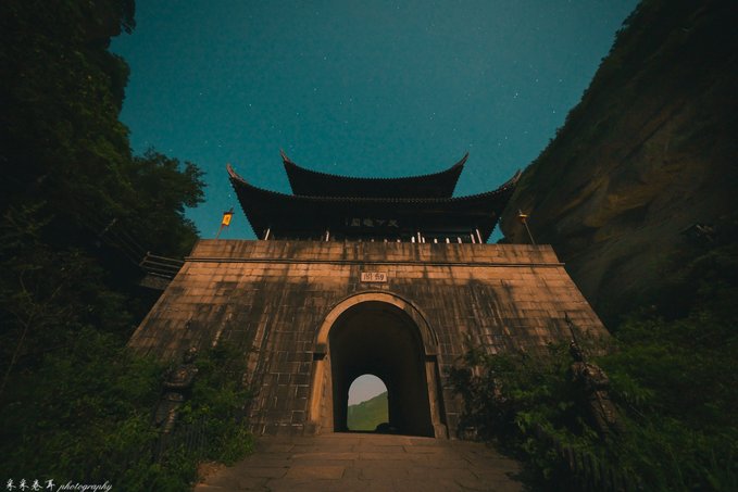 [尾声.星空下“剑阁”永恒] 是夜,我们踏着月光,跟随着夏虫的呢喃和夜风的指引,再次来到剑门关楼前。 星空下,碧山幽远,夜色苍茫。 关楼静立在大地之上,气势雄壮,气魄直指闪烁的天幕。 在时空的长河中,“ 剑阁 ”二字清晰可见,仿佛穿透了历史的迷雾,直至永恒。 正文完