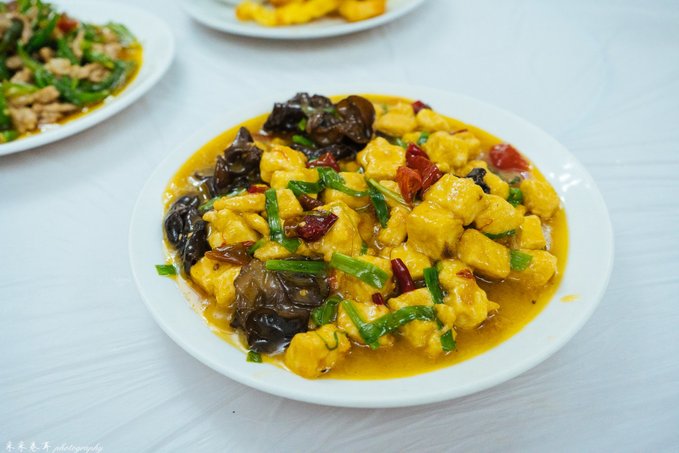 ↑ 这道菜叫做锅塌豆腐,这种豆腐韧性不错,看上去稍微偏老一点,实际上是因为稍微炸了一下,外壳看起来稍硬。实际上入口即化,滋味咸香扑鼻,配上木耳等配菜,更加美味。 …… 除此之外,还有很多和豆腐有关的菜品等待您去发掘哦。