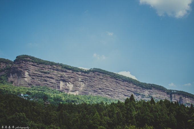 [炎炎夏日.初见剑门关之险] 选择酷暑季节来到剑门关,其实是一个偶然,从做出决定到成行只用了短短三天时间。 其实我之前对剑门关并没有什么先入为主的鲜明印象,到达这里之前,脑海里只是不停的回旋着一个画面,那就是小时候看电视剧《三国演义》中的一幕——魏国大将邓艾为了进攻蜀汉,在易守难攻的阴平一带,和士兵们一起身裹毡毯,从悬崖下滚下去,是的,就这么滚下去,用血肉之躯打开通向蜀汉的大门。那时候就觉得这个举动太过震撼,以至于让我忽略了后续的剧情发展,长久思索着那短短的一幕。 当然,剑门关并非阴平,历史的悲壮也早已湮没在时间长河中。但在进入景区大门之前,看到眼前的险峻山岭,我一直飞扬的思绪才得以拉回,心中不由为眼前开阔的风景而感叹。
