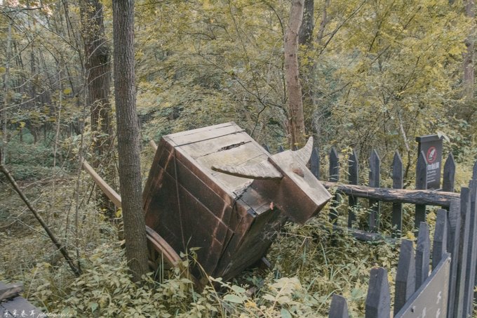 远处峭壁下,树林中的一尊士兵塑像,终日远眺关楼。