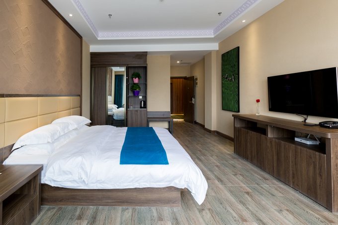 卫生、床品不用说,五星级标准,干净卫生。均配备液晶电视、宽带网络、超强的海绵保护床垫。让睡眠更有保障! 酒店一层设有弧形玻璃造型通透式西餐厅及室外烧烤吧,可容纳200人同时用餐,提供咖啡, 茶饮,可以享受惬意的同时,远眺那拉提优美的山景。