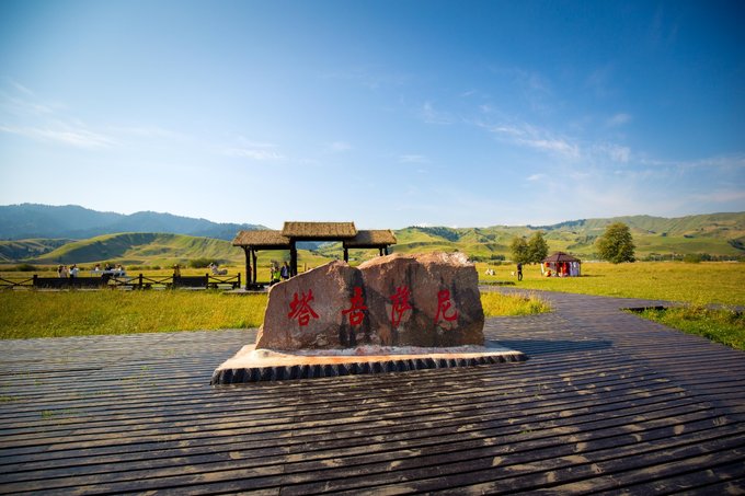 也可以走进火红的新婚毡房,听美丽的哈萨克新娘讲一讲传统毡房的构造与功能,以及毡房里日常生活起居的讲究,感受哈萨克族人生活中智慧的一面; 或者走进手工艺坊,向手巧的匠人学习皮具、花毡或刺绣等传统手艺,尝试着动手为自己或亲友DIY一份草原礼物;还可以走进歌舞大帐,有偿欣赏哈萨克族互动歌舞秀,同时品尝哈萨克族特色美食,深度体验哈萨克族热情的待客之道;当然也可以逛逛老木屋里的游牧市集,了解多种优质的草原土特产品。