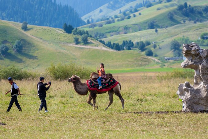 下午我们来到了“依提根塞”民俗互动体验区。那拉提草原曾被上海大世界吉尼斯总部分别授予哈萨克人口最多的草原”、“哈萨克毡房最多的草原”,可以说那拉提草原是展示哈萨克族文化的窗口与平台。来到依提根塞不仅可以了解哈萨克族的民俗文化,还可亲身体验和参与哈萨克传统生活方式。