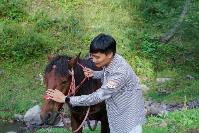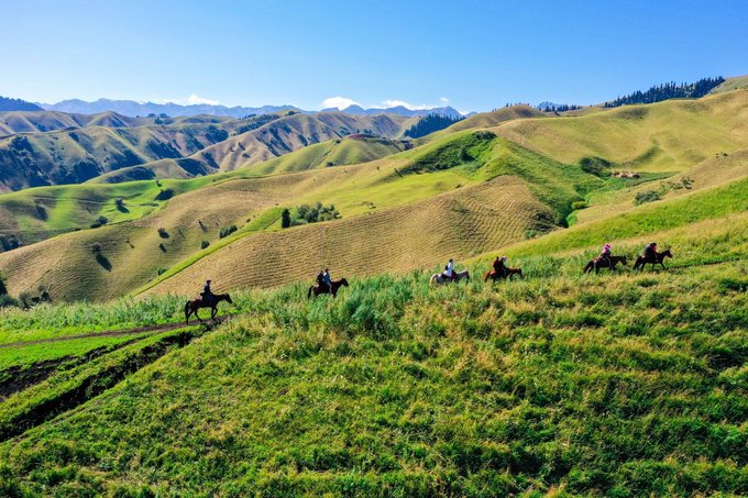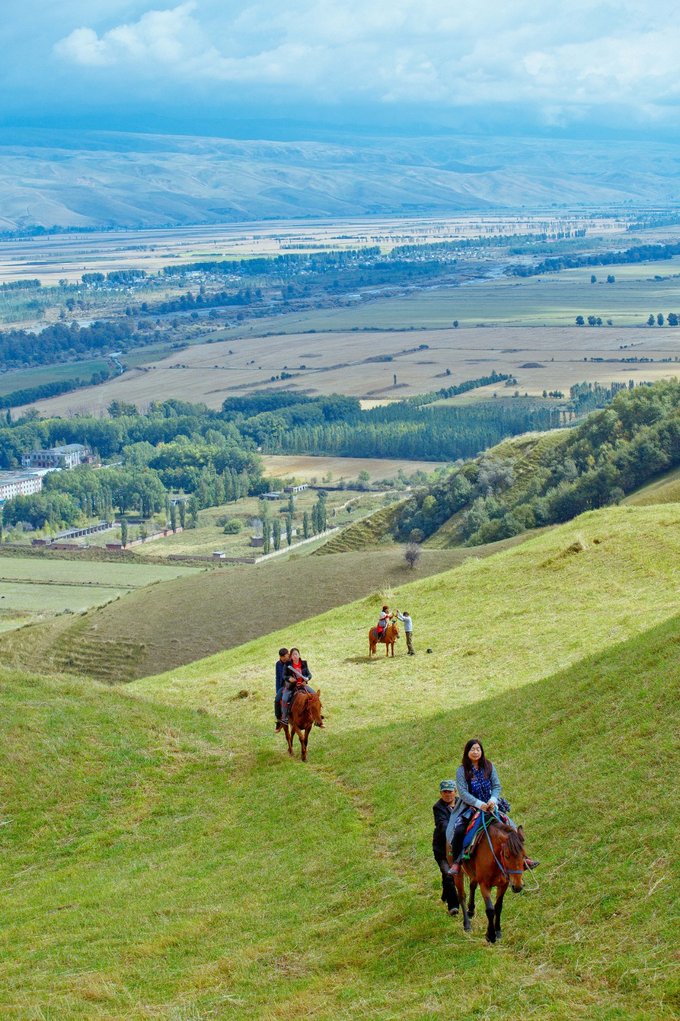 为了欣赏空中草原的美景,感受哈萨克族的风土人情,我们一行10人跟随信马游疆私人定制旅行来到那拉提风景区河谷草原。 那拉提草原是世界四大草原之一的亚高山草甸植物区,是一个著名的牧场。 哈萨克族是一个以草原游牧文化为特征的民族,大多数人过着逐水而居的游牧生活,因此马匹对于当地的牧民来说,是一个非常重要的交通工具。哈萨克族也被称为马背上的民族。
