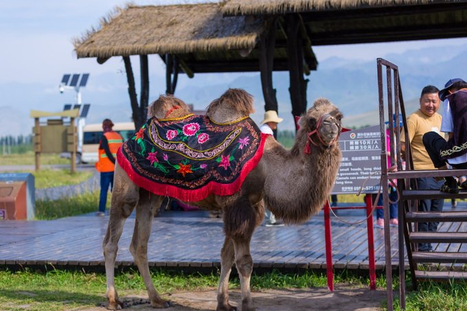 草原上不光有牛羊马,还有骆驼,在这里可以骑上骆驼在草原里面慢行,也可以拍照,是不错的体验。