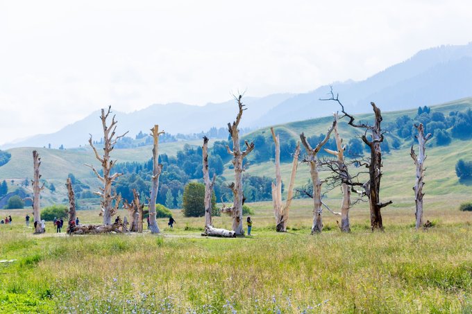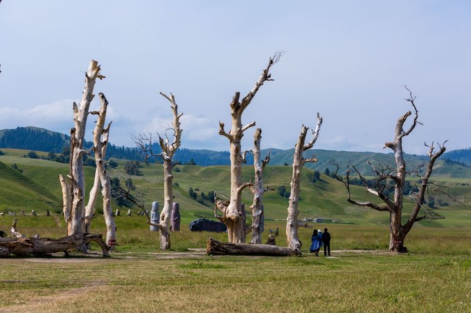 干枯的白杨树、茂密的草丛,这里慢慢会打造成网红打卡点,现在人还不是特别多,就赶紧拍拍照吧,以后火了都是人,拍照都要排队的。