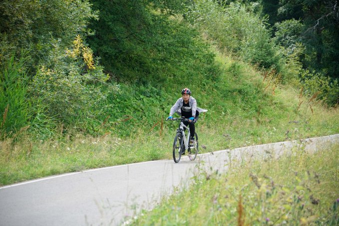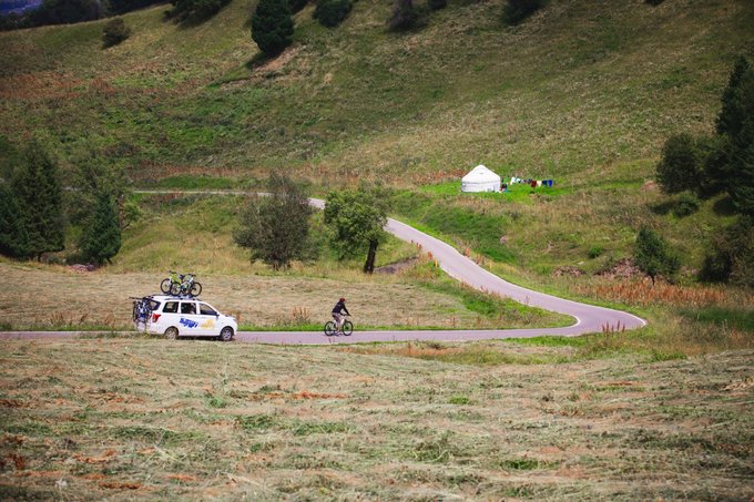 听景区工作人员介绍说,“4+2”体验项目是今年刚开始做的,180元一辆车加4辆山地车,四个人乘坐观光汽车到达骑行起点,然后佩戴头盔和骑行手套,骑行9公里的平缓山路,可以旅途中增加与自然接近的亲切感。感受新疆之美,拥抱着阳光照射下的山谷草原,呼吸从未有过的新鲜空气。