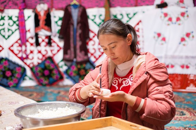 在这里还可以走进奶制品作坊,和勤劳的哈萨克姑娘一起动手制作奶油、酥油、酸奶、奶疙瘩、马奶子等纯天然奶制品,如果喜欢,也可以为亲朋好友打包一份奶制品礼品;