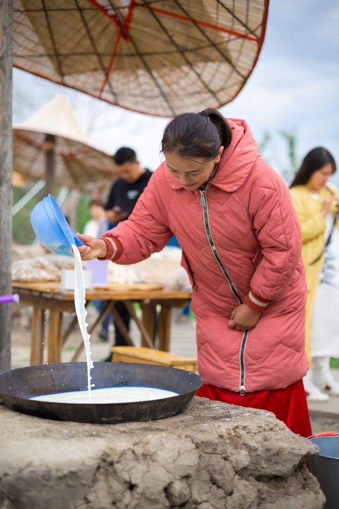 依提根塞民俗互动体验区的核心区域设有4顶哈萨克族传统毡房,演绎着哈萨克族丰富多彩的游牧生活,传达着草原上天人合一的古老生活智慧。 在这里,露天而建的馕坑,里面烧着炭火,做成型的哈萨克馕贴在馕坑的四周,上面有一个铁质的盖子,大概8—10分钟,馕就熟了,刚做好的馕外酥里软,特别好吃。