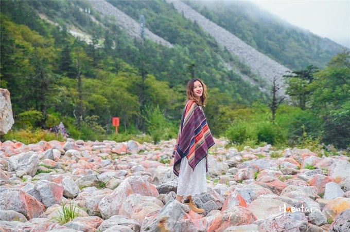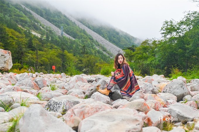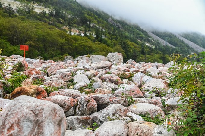 航拍完木格措,从这里乘坐大巴离开,沿线可以看见瀑布、森林、草原以及红石滩。这些景点也仿佛是川西风景的一个缩影,处处都充满惊喜!特别是红石滩可以说是川西风景的重要标记,它的形成原因是因为川西独特的地质特点极易形成降雨,而正是这潮湿滋润气候是橘色藻生长的必须环境。从而也造就了这奇特的自然景观。