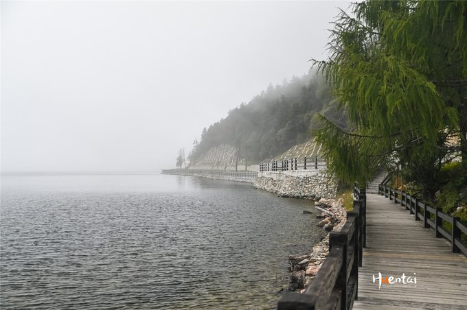 来到木格措景区,也要有一定的心理准备,因为高原的天气是有“脾气”的,阴雨去的快,来的也快。想要见一见木格措的真容,还真的需要一点点的运气。倘若赶上了大晴天,必定是一次值回票价的旅行。而我们这次就遇到了阴雨天。在湖边灰蒙蒙的,实在看不清模样。相信这样的天气,大家肯定和我一样都没有什么心情乘船游湖了吧?小遗憾!