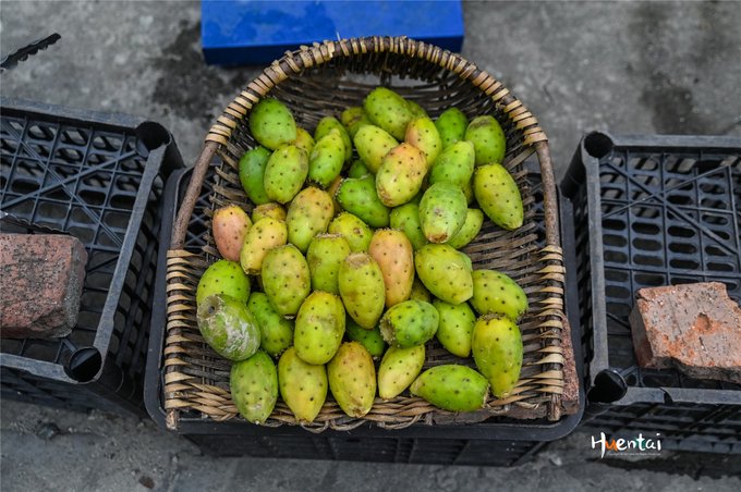 在路上也买到了好吃的仙人掌果,还是第一次吃,果肉有点类似火龙果,只是里面的籽非常硬,很甜!表皮有许多的毛刺,需要清洗。买过以后,是售卖的大娘给我们洗干净的,一共十块钱,足足有一袋。