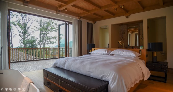 山间坐落着一栋栋木屋,每一栋都各具特色。推开木栅栏就像走进了专属于自己的后花园。 走进我住的房间,白纱帷幔,满满地少女心与公主情怀。躺在床上就能看风景。