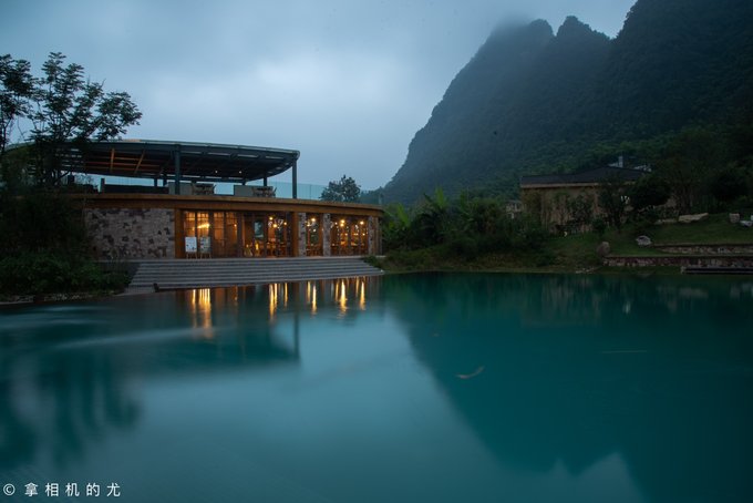 坐在阳台上沏一壶茶,一切美景尽收眼底。这里有一个INS风的泳池,被山中仙气围绕。远处还有云雾缭绕的青山。