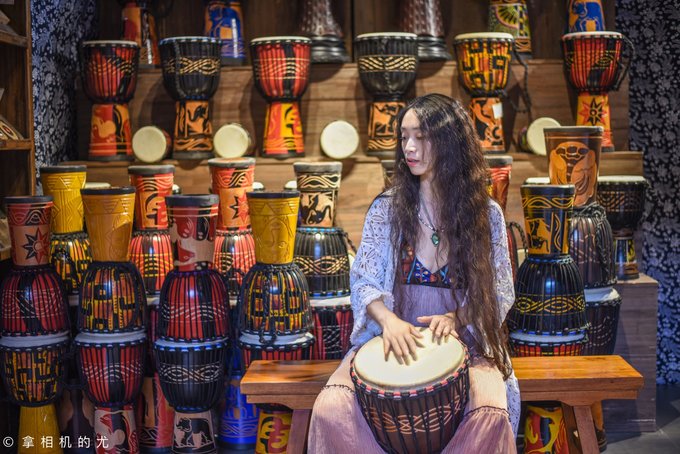 玩 非洲 鼓: 非洲 鼓一般分为民谣打法和传统 西非 曼丁打法。不同打法对鼓的音色要求也不一样。这里的 非洲 鼓以民谣伴奏鼓为主,不会打没关系,店里的小姐姐会亲自教你。