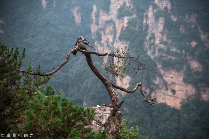 无奈,我们运气并不好,还下起了雨,下大雾时,什么也看不见。下面几张照片是第二天我们又重新进景区拍摄的。还是挺遗憾的,这次未能见到天子山的绝美。但遗憾也许可以决定下一次的启程。