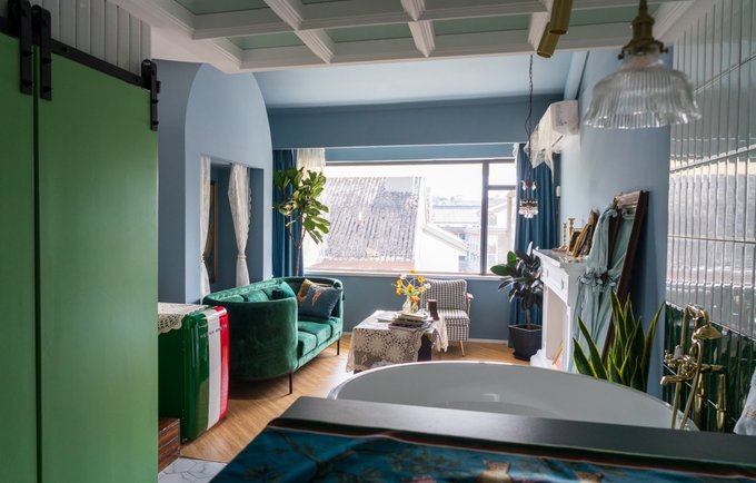入住的是民宿的Loft房型,两层的设计把睡眠时间跟其他部分分开,也让房间不显拥挤,腾出更多空间放行李、阅读,或者再来个下午茶。置身这样的环境之中,真可以安心做一个复古女郎。